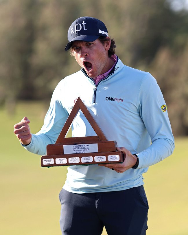 同组出发的日本选手金谷拓实一度有望追平申克,但在落后一杆的情况下,凭借1杆优势惊险赢得百慕大锦标赛,然而在阵风时速超过30英里的极端天气条件下,其18号洞攻果岭一杆被左侧狂风带起落入后方沙坑。